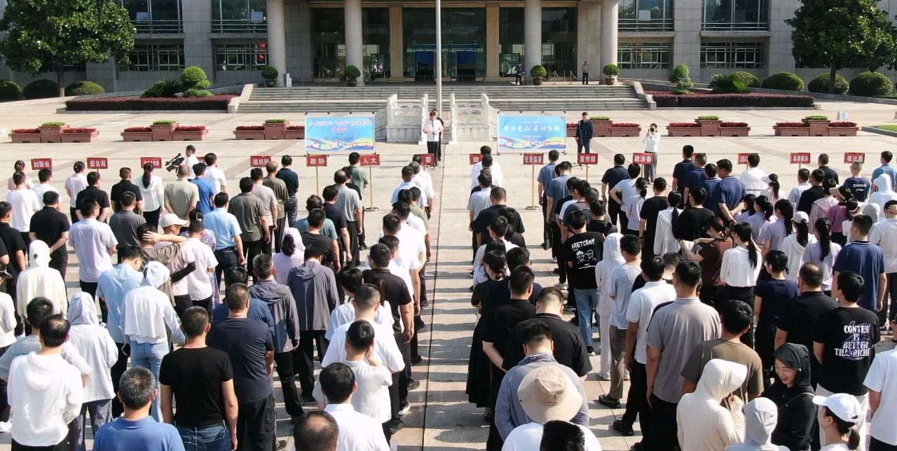 6月14日上午,县行政中心举行“工匠杯”职工体育活动开幕式,在家的县处级领导和行政中心办公区干部职工一起参加活动。
